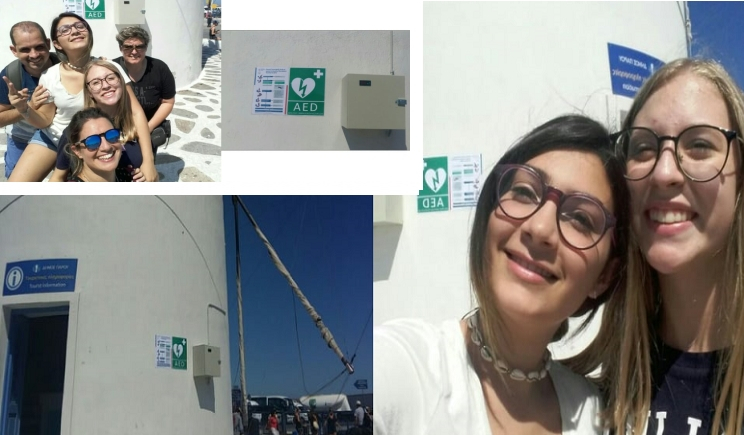 Επίσης ευχαριστούμε τον ανθρωπιστικό οργανισμό KIDS SAVE LIVES – τα παιδιά σώζουν ζωές – και την ΕΕΕΠΦ για την εκπαίδευση των μαθητών και για την πρωτοβουλία ανάπτυξης ενός εθνικού δικτύου απινιδωτών σε σχολεία και κοινότητες της χώρας και τον Δήμο Πάρου που επέτρεψε να εγκαταστήσουμε τον απινιδωτή στον Μύλο στο λιμάνι για τους καλοκαιρινούς μήνες.