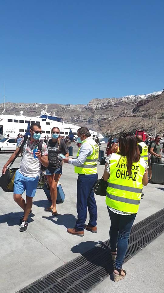 ΜΟΙΡΑΖΟΥΜΕ ΜΑΣΚΕΣ ΚΑΛΟΣΟΡΙΖΟΝΤΑΣΣΤΟ ΛΙΜΑΝΙ ΤΟΥΣ ΕΠΙΣΚΕΠΤΕΣ ΜΑΣΗ ΣΑΝΤΟΡΙΝΗ ΠΑΡΑΜΕΝΕΙ “ΚΑΘΑΡΗ”