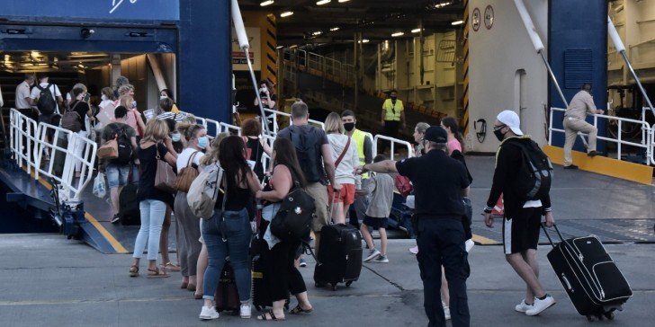 Οι αδειούχοι του Αυγούστου, εγκαταλείπουν από σήμερα την πρωτεύουσα, τηρώντας τα μέτρα προστασίας, φορώντας τις μάσκες που απαιτούνται στο ταξίδι με το πλοίο, ενώ φέρουν και τα προβλεπόμενα έγγραφα για το ταξίδι τους, με πληροφορίες για την κατάσταση της υγείας τους και το αν ήρθαν σε επαφή με κρούσματα της Covid-19.