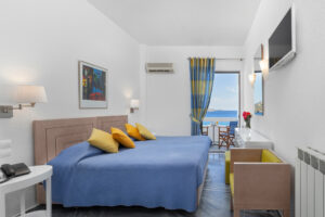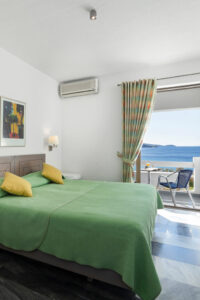 Hotel Perrakis rooms in Andros are spacious and bright, with balconies all facing the sea. The elegant decoration and the carefully chosen furnishings give a special quality to your stay. Choose from 3 types of rooms that accommodate 1 to 4 guests. Enjoy our amenities along with our daily cleaning service that follows specific sanitary protocols and relax stress free.