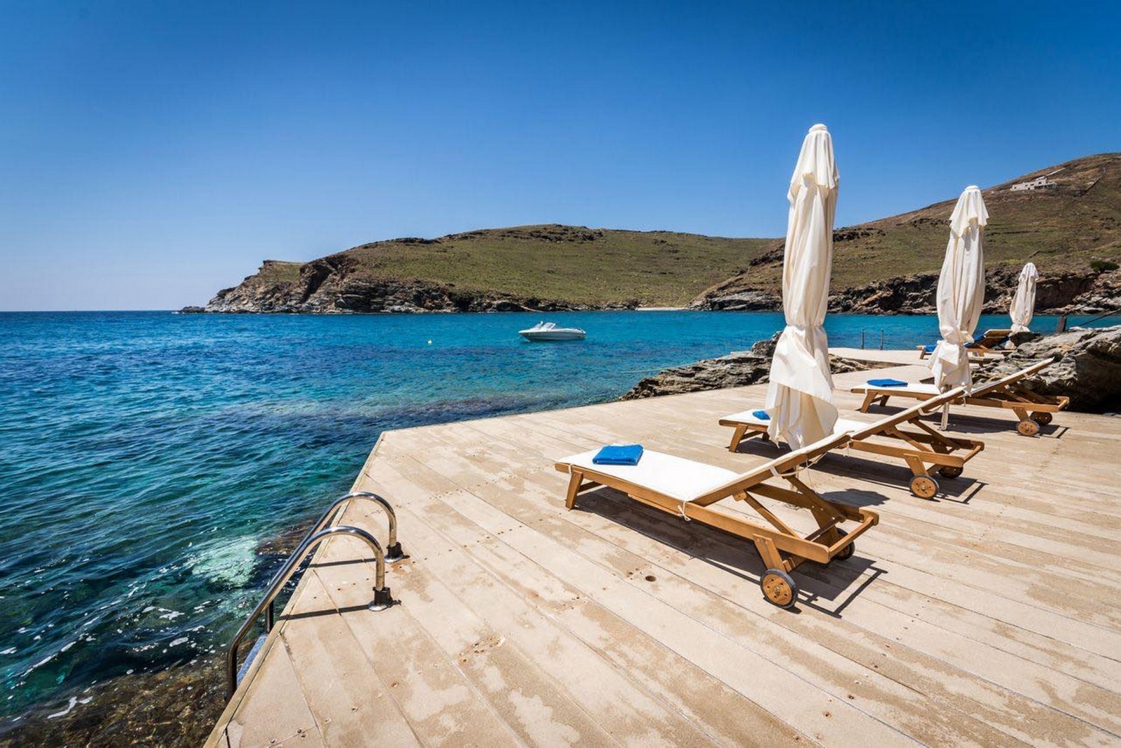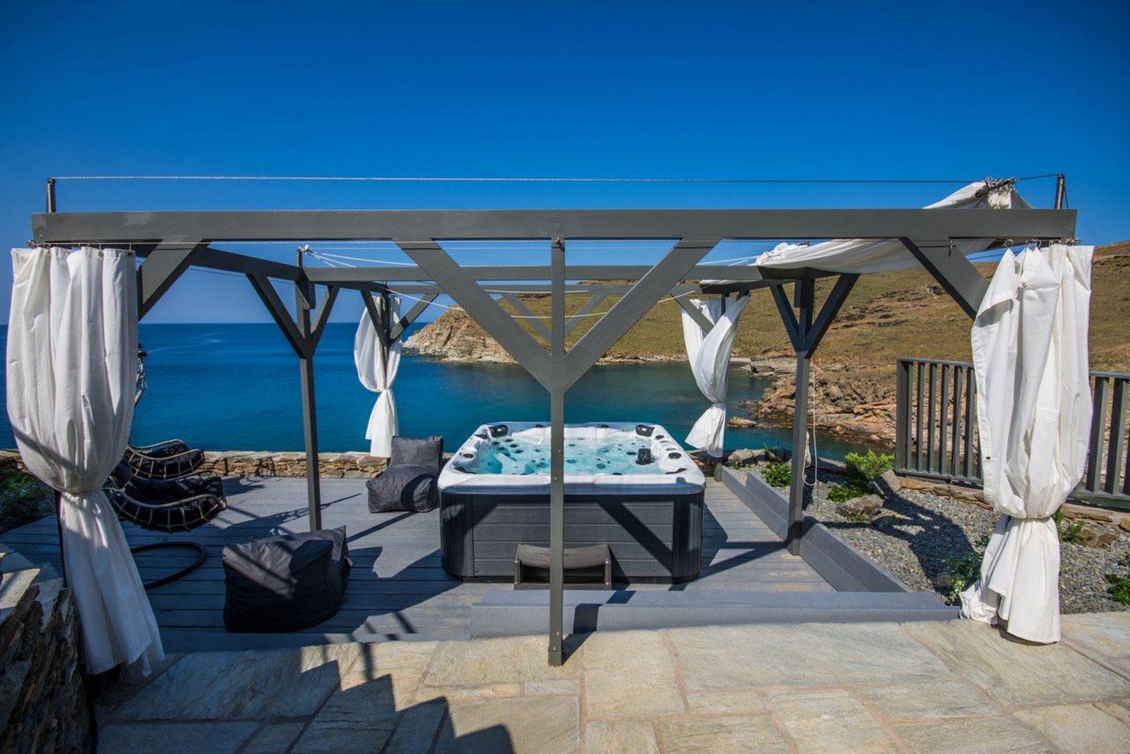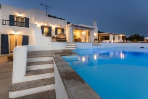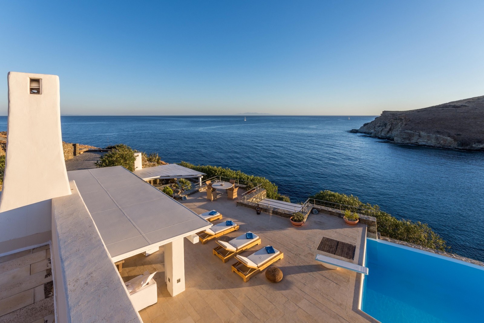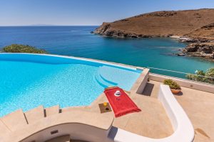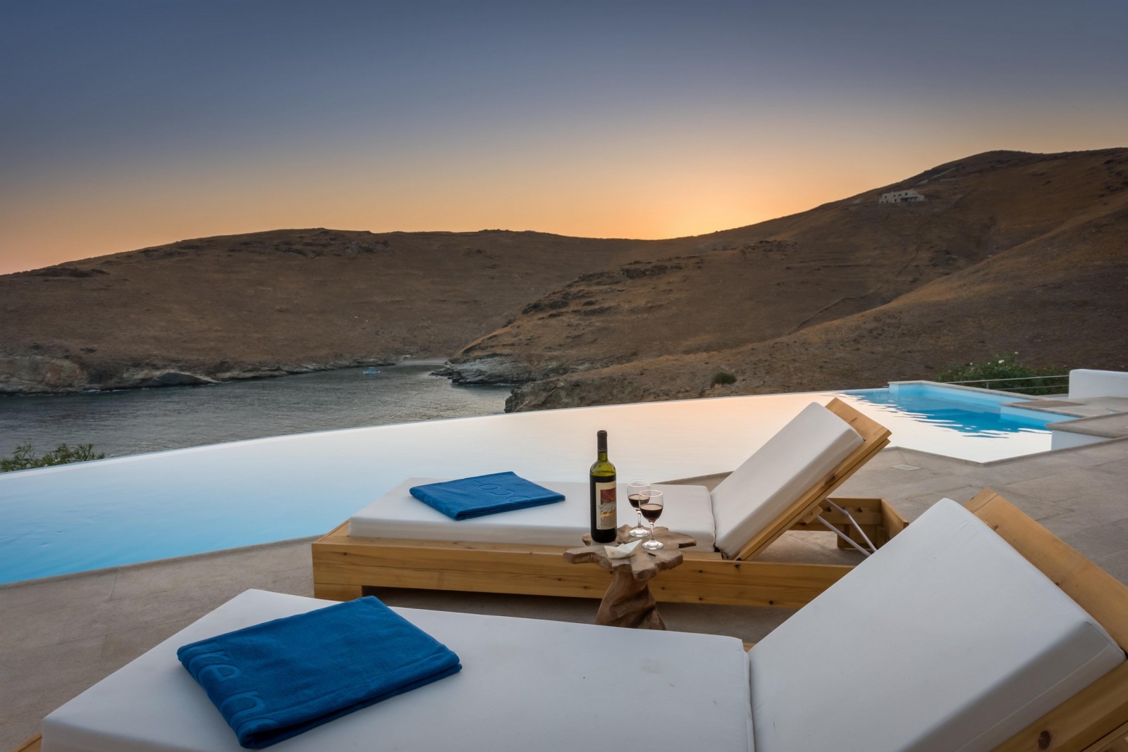 Thoughtfully built for complete privacy and lavish comfort, the grandiose Villa Blue Paradise is flooded with light through airy outdoor patios and lounge spaces overlooking the Aegean Sea. Tastefully designed by local architects, the villa incorporates natural elements of the Syros landscape that grows organically around it. Spread in multiple levels with traditional materials artfully mixed with modern touches of pure luxury, emulates refined elegance. The serene combination of ocean and earthy hues complements the already existing beauty of the landscape. Unwind in the intoxicating ambience of Villa Blue Paradise and pamper yourself with a hospitality that is second to none.